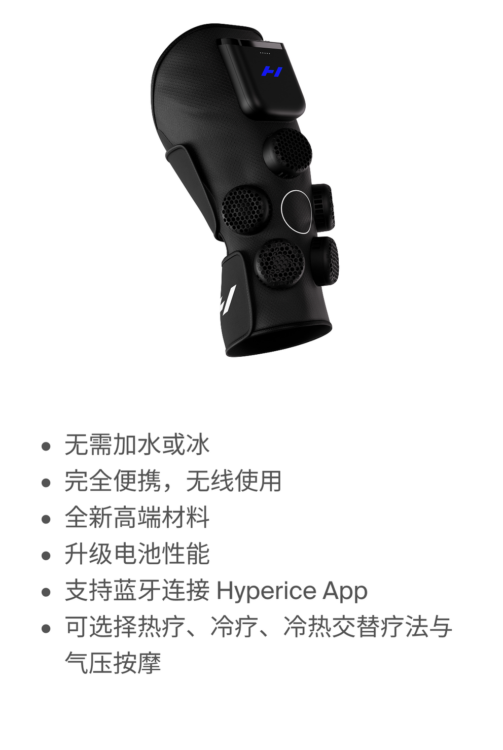 电子加热、冷却和冷热交替膝关节装置,带加压功能,可用于热身和恢复。